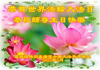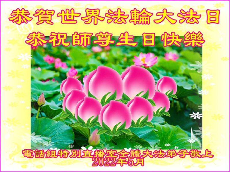 电话组特别直播室全体大法弟子恭贺世界法轮大法日!恭祝师尊生日快乐!