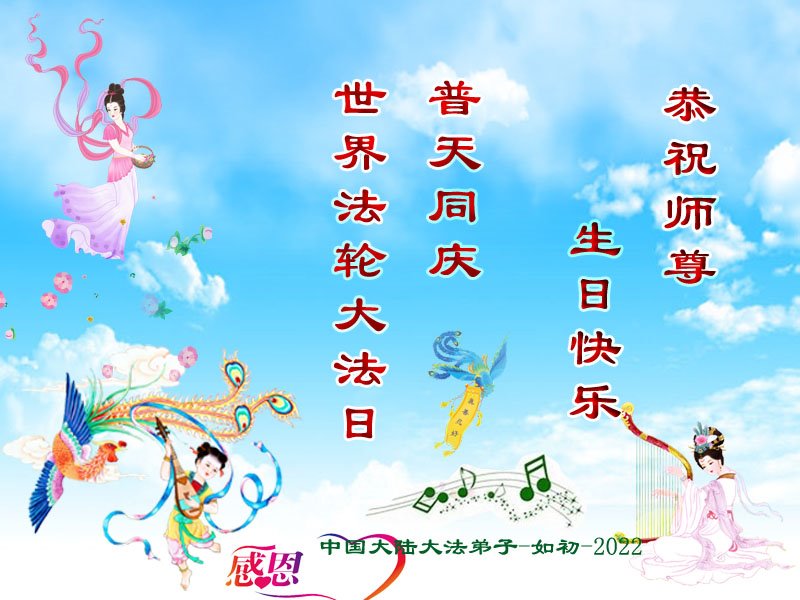 感恩师父慈悲救度,不管环境如何变化,我们都时刻牢记师父的教诲,学好法、修好自己、救度众生。 大陆一大法弟子恭祝师父生日快乐!恭贺大法洪传世界30周年!普天同庆5.13世界法轮大法日!