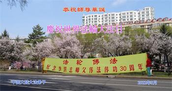 弟子会坚定实修,修好自己,做好救人的事。随师法正人间。 中国大陆大法弟子庆祝世界法轮大法日!