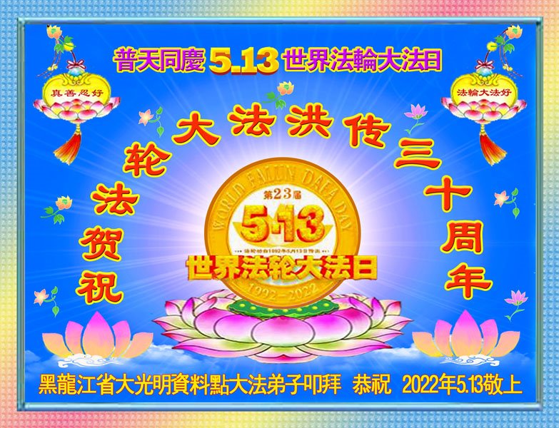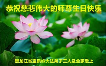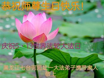 黑龙江七台河一家大法弟子恭祝师尊生日快乐暨恭贺世界法轮大法日!