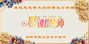 湖南常德大法弟子恭贺大法日!恭祝慈悲伟大的师尊生日快乐!