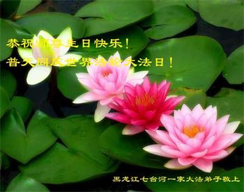 黑龙江省七台河大法弟子明心恭贺师尊华诞暨法轮大法日!