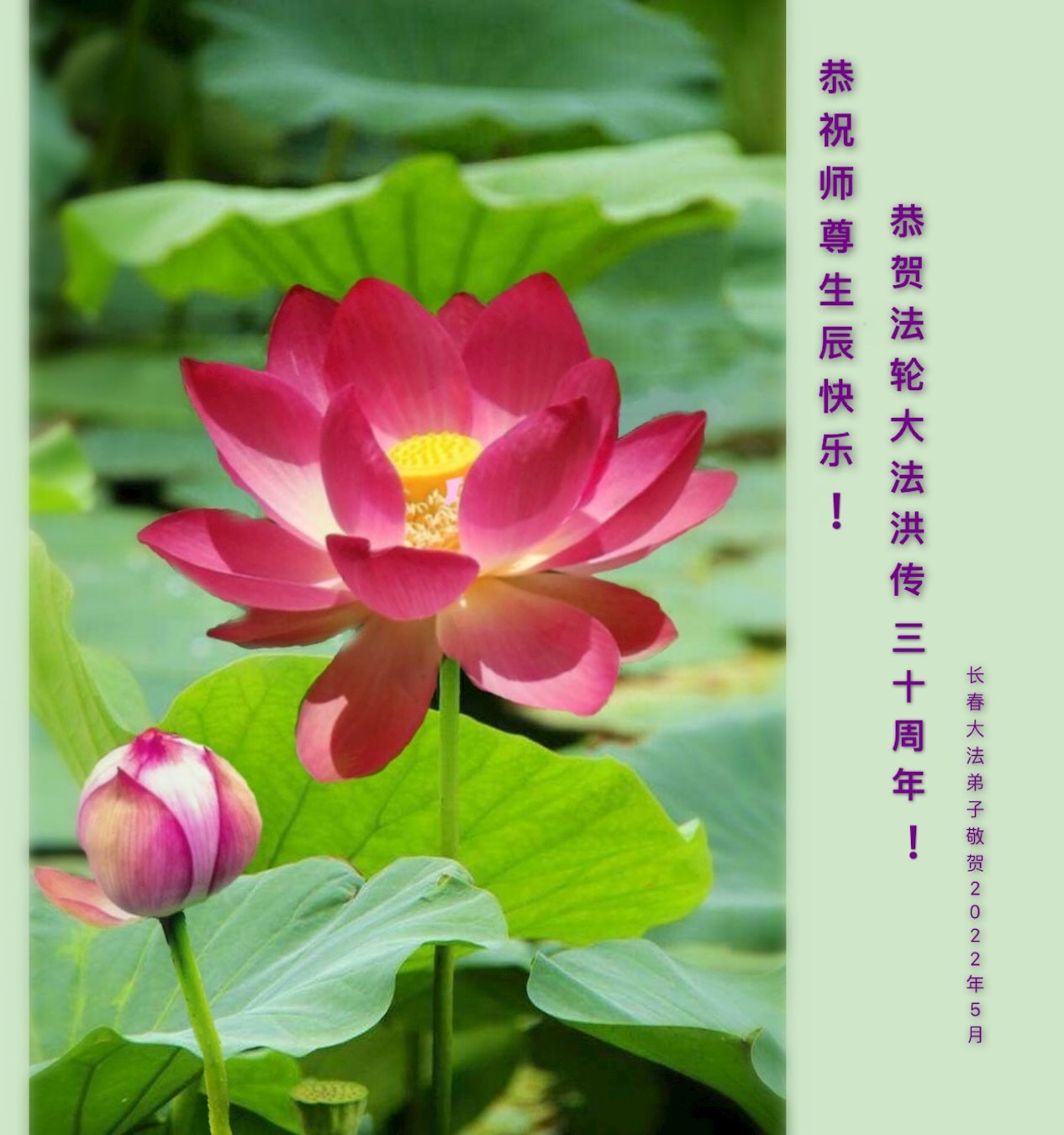 感恩师父慈悲苦度!请师父放心,弟子一定要做好三件事,跟师父回家。 长春俩大法弟子叩拜师尊 二零二二年五月 吉林省长春青年大法弟子恭贺世界法轮大法日暨师尊华诞!