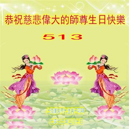 师父好!弟子想念您!感恩师尊慈悲救度!感恩大法!法轮大法好!真善忍好! 上海浦东姐妹俩大法弟子敬上 河北省石家庄开发区一学法小组恭贺5.13世界大法日!