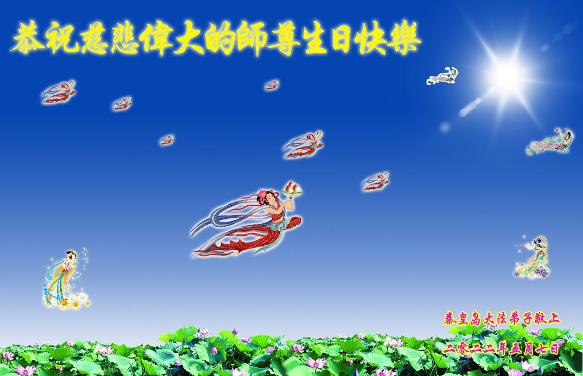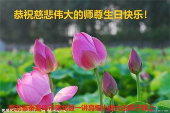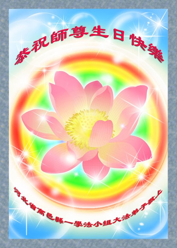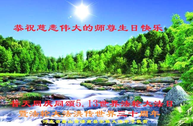我们得法的日子就是我们的再生日,叩谢师父救命之恩!我们一定坚修大法,不辱使命,做好三件事,跟师父回家。师父您辛苦了!盼师父早日回国。 河北唐山玉田大法弟子恭祝师尊生日快乐!