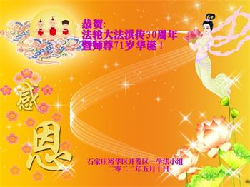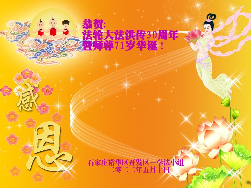 河北省石家庄一大法弟子恭贺法轮大法传世三十周年!恭祝慈悲伟大的师尊华诞!