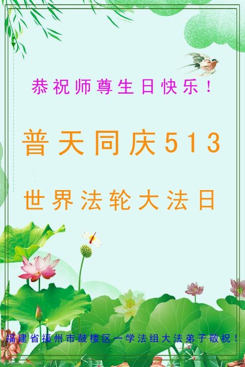 福建省福州市一大法弟子恭祝师尊生日快乐!恭贺5.13世界法轮大法日!