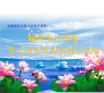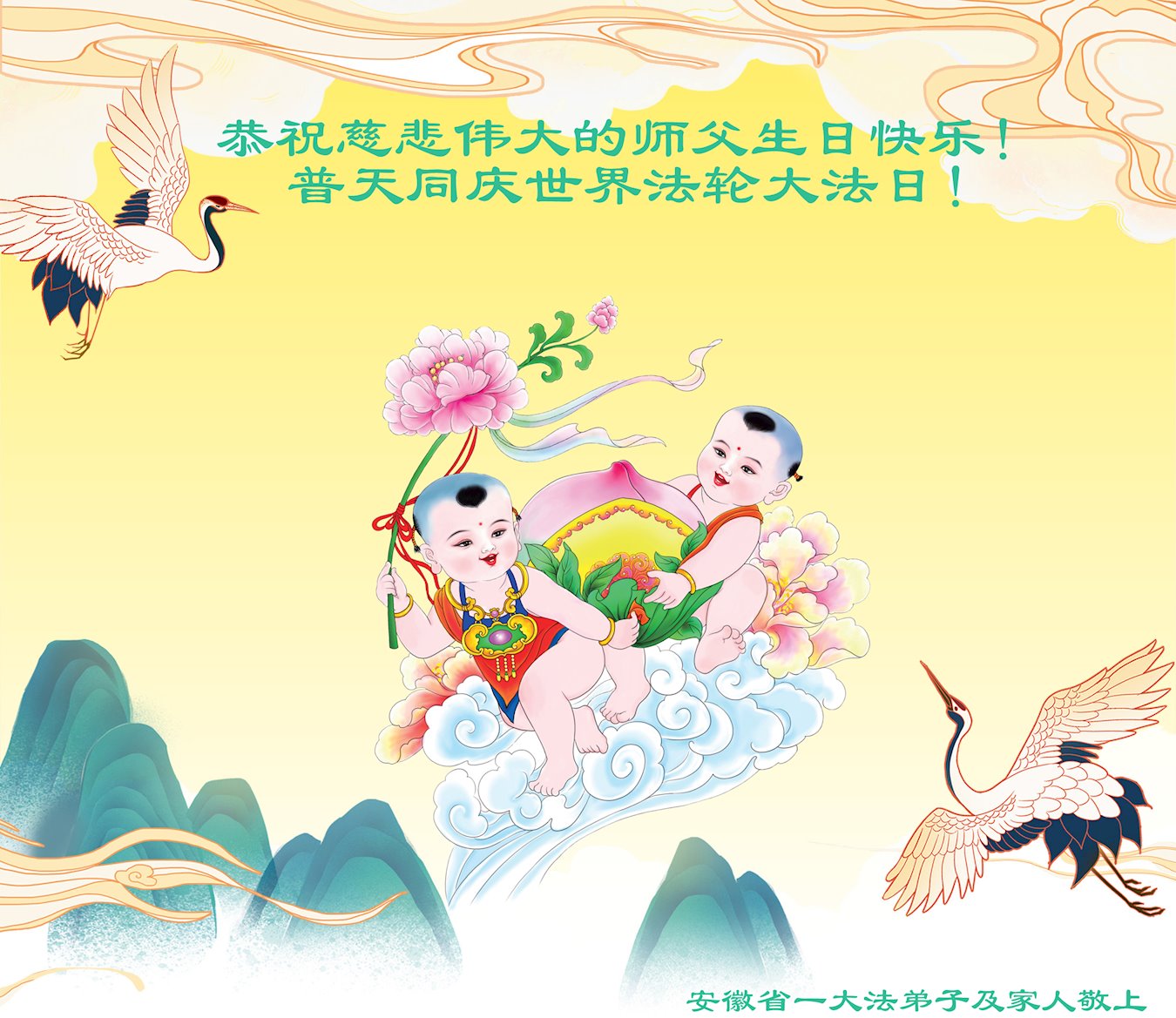 中国大陆安徽大法弟子恭贺世界法轮大法日!恭祝慈悲伟大的师尊生日快乐!