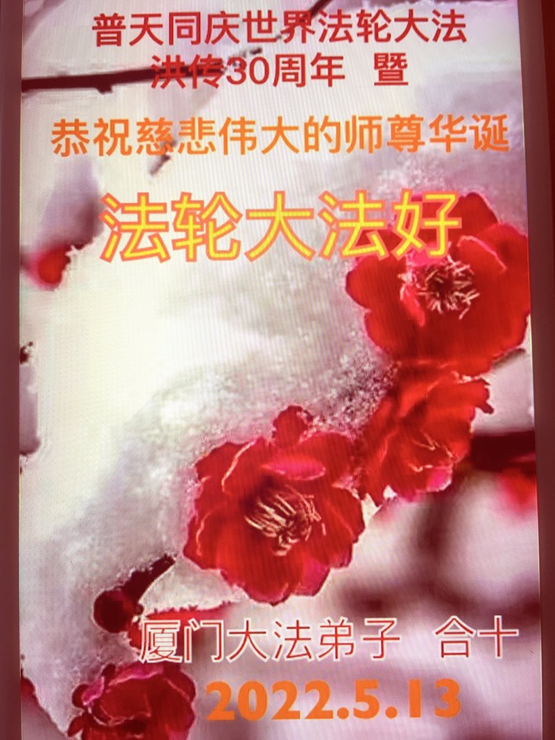 福建省厦门大法弟子恭祝慈悲伟大的师尊生日快乐!普天同庆世界法轮大法洪传三十周年!