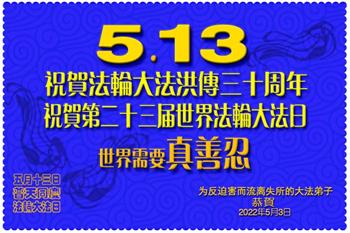 【明慧网二零二二年五月十四日】 安徽省安庆市全体大法弟子恭贺5.13世界法轮大法日!