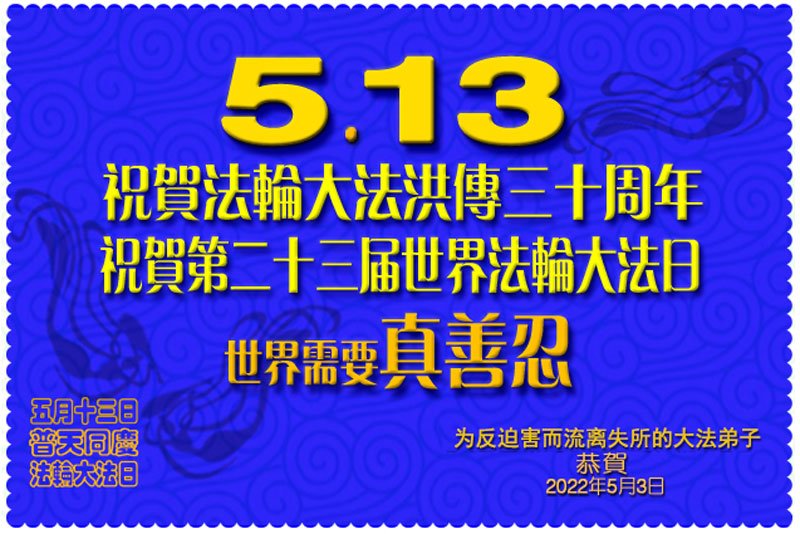 恭祝师尊生日快乐!普天同庆5.13世界法轮大法日! 安徽省宁国市全体大法弟子 敬上 二零二二年五月九日 甘肃兰州市一母女大法弟子恭祝师尊生日快乐!