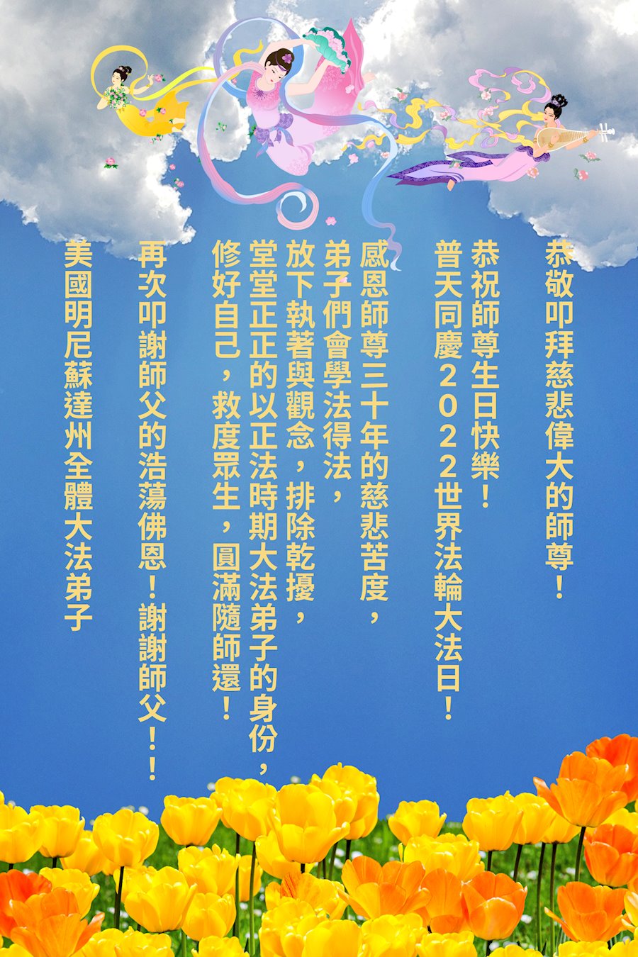 美国明尼苏达州全体大法弟子恭祝师尊生日快乐!普天同庆2022世界法轮大法日!
