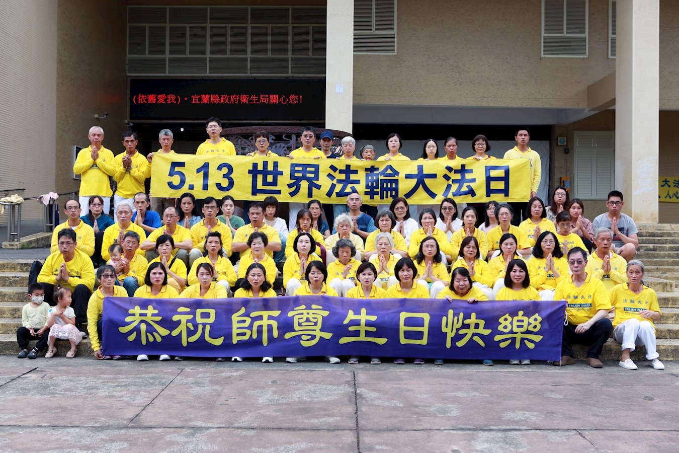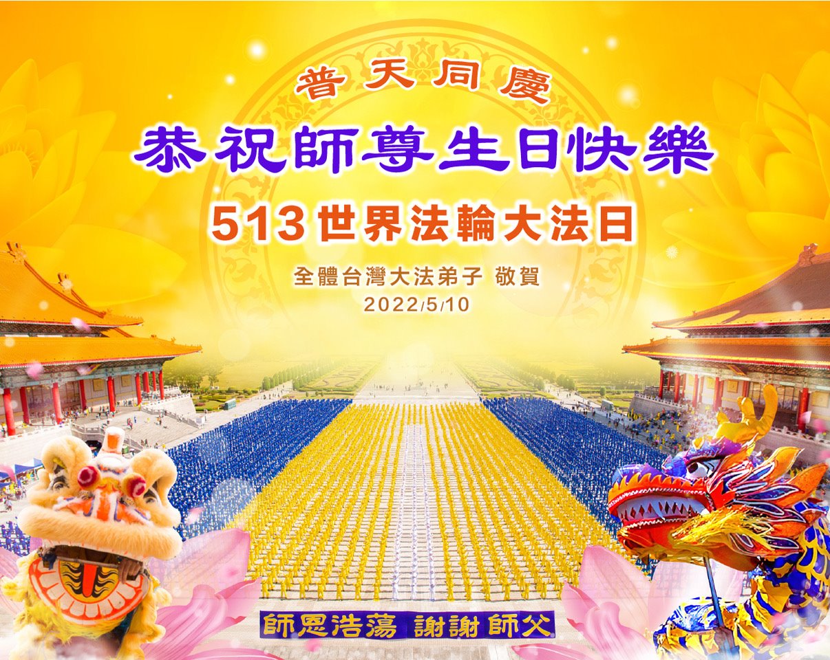 “ 五一三”是世界法轮大法日。二零二二年五月七日,台湾宜兰 县部份法轮功学员在文化中心,传播法轮功祥和美好, 学员合影恭祝慈悲伟大的李洪志师尊七十一岁华诞,庆贺法轮功弘传世界三十周年 。 罗马尼亚大法弟子恭祝慈悲伟大的师父生日快乐!