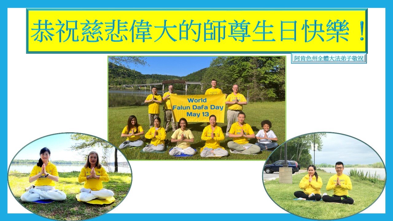 美国阿肯色州大法弟子恭祝慈悲伟大的师父生日快乐!