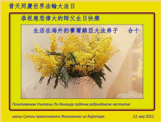 感谢师尊慈悲救度,我们一定会继续努力做好三件事,时刻谨记真、善、忍,在法中精進实修。更加成熟稳重的承担起救度众生的洪誓大愿,在不同项目中发挥各自的作用,以大局为重,圆容整体,完成师尊赋予的神圣的使命! 意大利大法弟子敬拜 二零二二年五月十三日 塞尔维亚和黑山大法弟子恭祝慈悲伟大的师尊华诞!