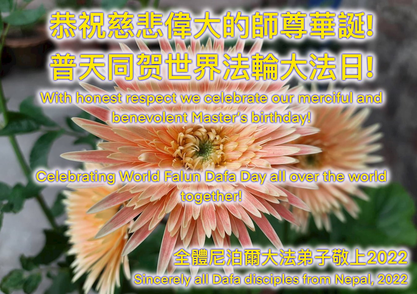 尼泊尔大法弟子恭祝慈悲伟大的师尊华诞!