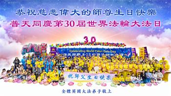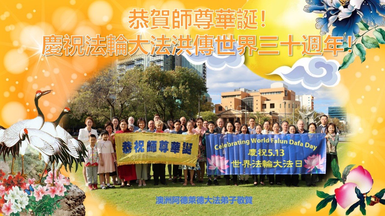 澳洲阿德莱德大法弟子恭贺师尊华诞!恭贺法轮大法洪传世界三十周年! 英国大法弟子恭祝慈悲伟大的师父生日快乐!
