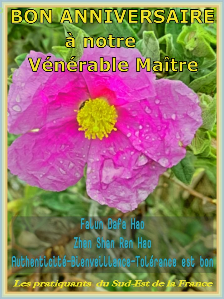 尊敬的师父您好! 值此世界法轮大法日暨师尊华诞之际,请接受法国东南部大法弟子的感恩。 合十 法国东南部大法弟子敬上 全体法国大法弟子恭贺慈悲伟大的师尊华诞!欢庆大法洪传三十周年!