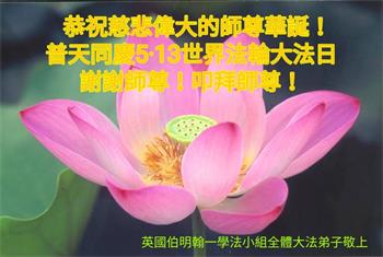 世界各地参与法轮功线上多种语言教功的全体大法弟子恭祝师尊生日愉快! 英国伯明翰一学法小组全体大法弟子恭祝慈悲伟大的师尊华诞!