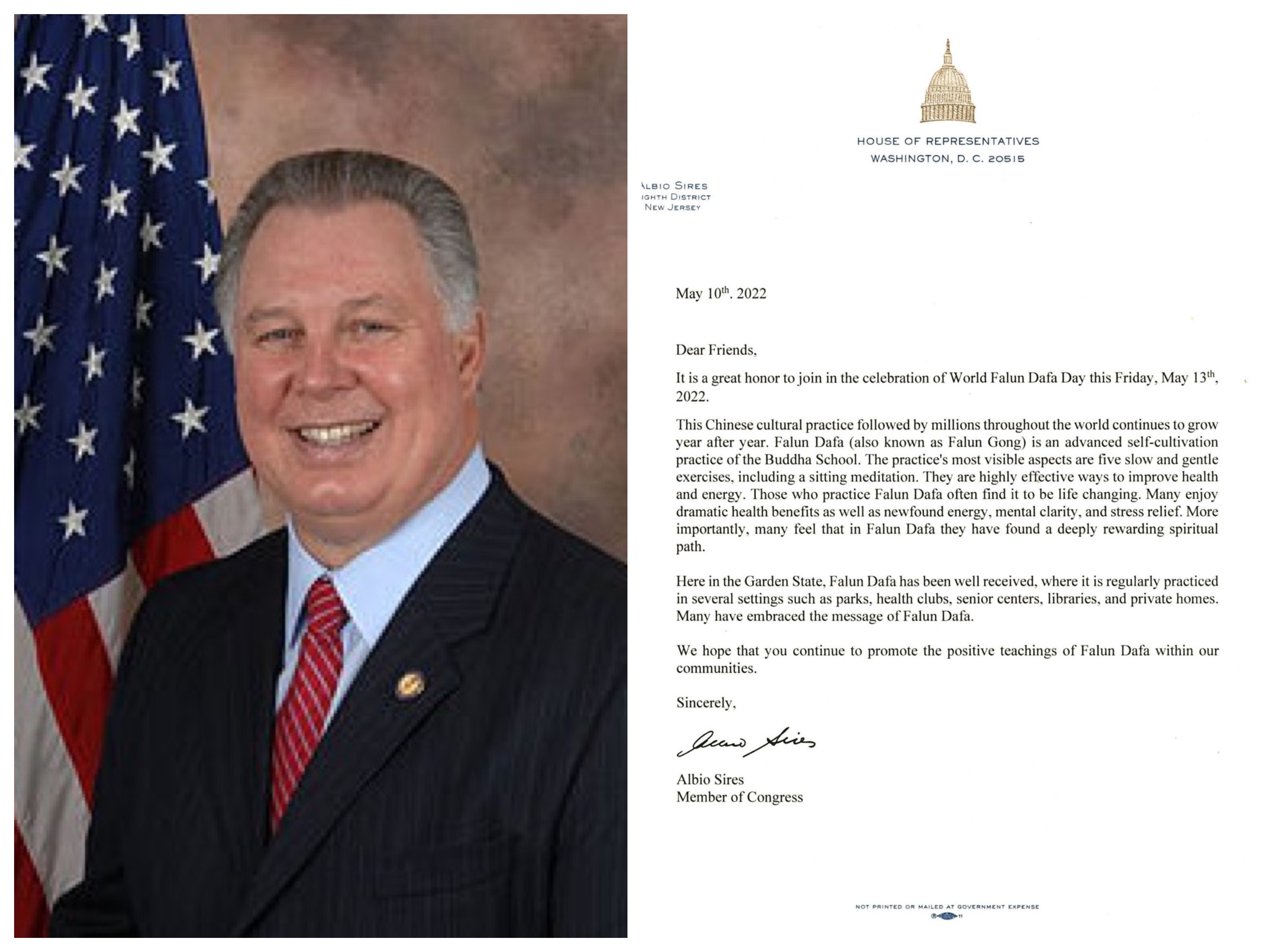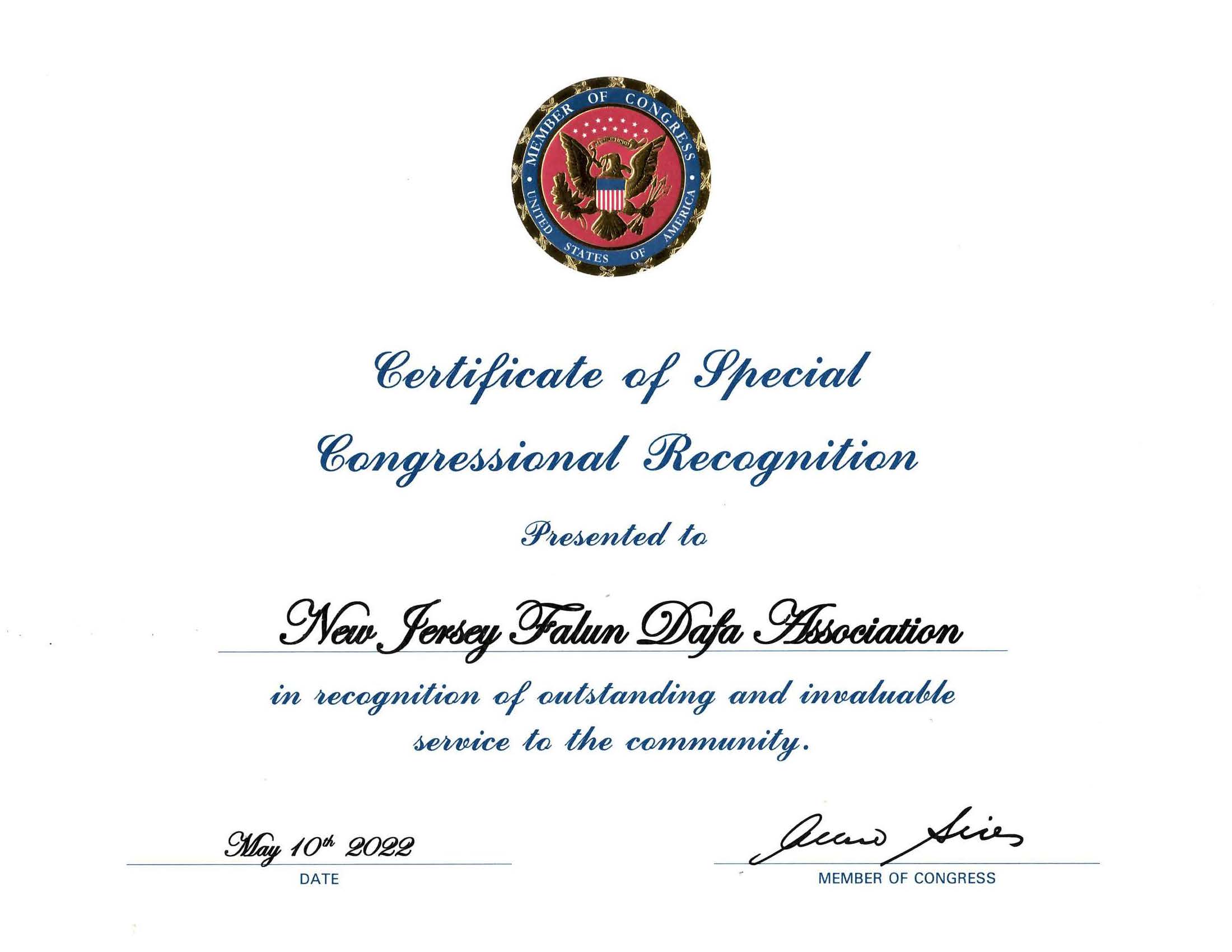 联邦众议员杰斐逊·范德鲁(Jefferson Van Drew)在褒奖中说,第二选区公民“认可新泽西法轮大法协会能启迪人心,并以其能量和成就,帮助我们瞥见一个充满希望的美好未来”,“在此表示敬意”。以下为褒奖译文: 鉴于,新泽西州和美利坚合众国的强大与成功仰仗其具有能力和才华的公民; 鉴于,第二国会选区的公民通过他们选出的代表,认可新泽西法轮大法协会能启 迪人心,并以其能量和成就,帮助我们瞥见一个充满希望的美好未来; 鉴于,新泽西州法轮大法学会为促进和改善我们的社区、新泽西州和全美国所做的非凡努力带来的荣誉和自豪; 因此,国会议员杰斐逊·范德鲁在此表示敬意,并祝愿未来依然幸福和成功。  图4~5:新泽西州第八选区联邦众议员阿尔比奥·西雷斯(Albio Sires)颁发国会特别证书(图4)和贺信(图5),表彰法轮大法对社区的贡献。 |