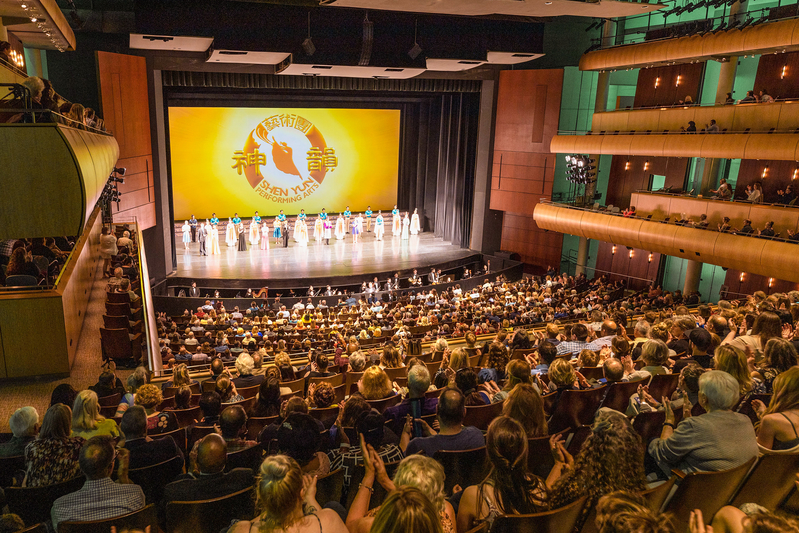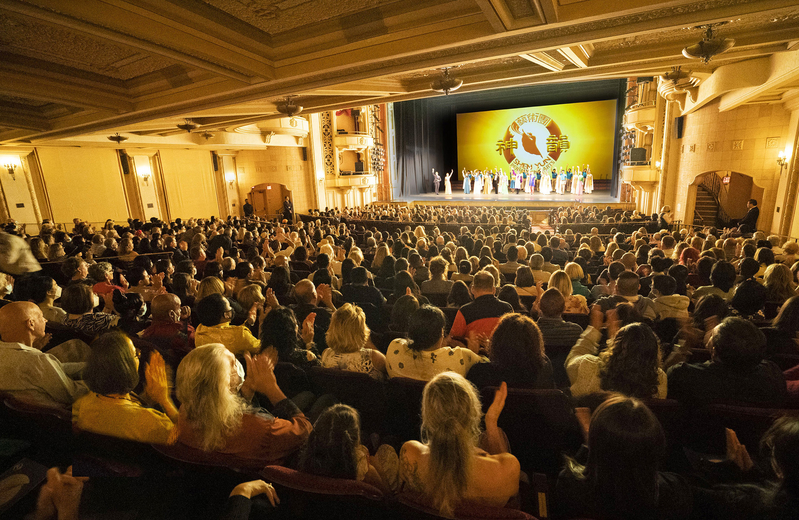 图4:二零二二年五月二十八日,神韵环球艺术团在圣巴巴拉格拉纳达剧院一日两场演出爆满。图为当日晚场演出谢幕图。(大.纪.元;) |