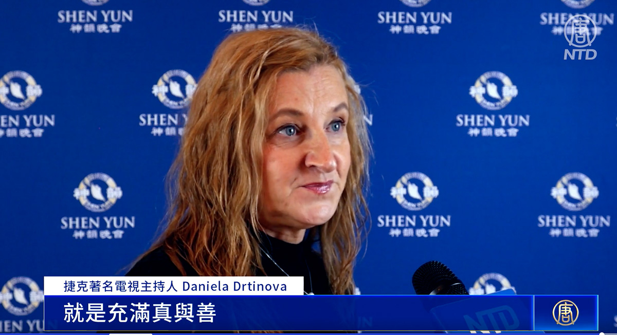 这是佛朗哥·克拉科利奇(Franco Cracolici)第一次观看神韵,他说:“我认为演出是非凡的,美不胜收,融合了历史、文化和高科技。那些古香古色的舞蹈,堪称一幅幅精美绝伦之画。” 佛朗哥·克拉科利奇(Franco Cracolici)对神韵演出融合了历史、文化和高科技真实展现人类智慧高度发达的那段历史感到振奋。他表示,观看神韵,让他想起自己研究多年的中国古代文化和唐朝。 他说:“我认为古代历史给我们讲述了很多东西,中国哲学是人类历史上最博大精深的。公元前六世纪开始,老子、庄子、列子这些具有人类终极智慧的伟大哲学大师们诞生(于中国)。神韵用如此精彩绝伦的演出来更新传统,非常重要!我爱这个演出,她所呈现的是如此宽广的胸怀,对于娱乐也具有伟大的认知。这是一场具有娱乐性的演出,可以让我们找回孩童般的纯真,让我们内心获得新生。” 佛朗哥·克拉科利奇是文化协会“La Compagnia del Tao大道组织”的创始人和主席,该协会由意大利著名的哲学家、汉学家、医生、建筑师和音乐家组成。他也是佛罗伦萨针灸学院主任,获得佛罗伦萨医生勳章,还是意大利多所大学的教授。 他庆幸看到神韵让中华文明得到永生和不朽,他表示:“这是一项重要的计划,一个文明因此而得到永生、不朽。我们不能让伟大的历史消亡,尤其是那些给予我们新思想的,就像中国古代哲学打开了很多人的思维。我们认为中国是最伟大的地方之一──中心之地。这个中心之国体现在许多层面,包括艺术、建筑、服装,中国是(在历史上)为许多人类存在的流派开辟道路的地方。” 克拉科利奇佩服神韵艺术总监的天才,希望年年都能看到神韵上演:“我要向神韵艺术总监表示祝贺,我想告诉他,能够达到如此强度的协调和平衡是非常罕见的。所以神韵艺术总监绝对是个天才,他是非凡的!我希望他能让神韵演出一年年持续上演。” 捷克著名节目主持人:满怀敬畏  图6:二零二二年五月二十八日晚,捷克著名电视主持人(Daniela Drtinová)在布拉格会议中心,观看了神韵世界艺术团的演出。她说:神韵是超凡的。(新!唐!人:电视截图) |