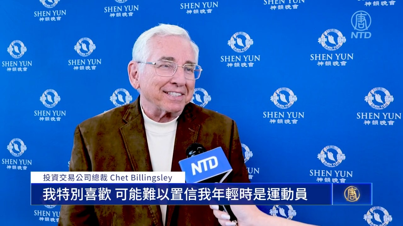 杰德·利伯(Jed Leiber)表示自己从未见过像神韵这样非凡的演出,“神韵的真人舞蹈与动画天幕配合得天衣无缝。我从未见过如此非凡的演出,而我来自纽约,一个能看到很多音乐剧的地方。观众会看到高难度和伸展动作,这在美国并不常见。”他说:“我无意冒犯美国芭蕾舞明星;但神韵演员的灵活度超越了他们。” 作为专业音乐人,杰德·雷伯(Jed Leiber)注意到神韵音乐元素和结构非常丰富,表现力极强。他说:“我觉得神韵音乐最有意思的是结合了不同乐器与时代背景,其中有些非常古老的元素,有些或许是民族音乐结构。”“神韵让观众超乎预期,这些令人惊喜的元素正是神韵让观众著迷的原因。” 雷伯还说:“我为神韵整台节目各方面的配合致上敬意,每个部分的负责人都非凡卓越。” 投资交易公司总裁:神韵可以稳定社会  图10:二零二二年五月二十九日下午,投资交易公司总裁切特·比林斯利(Chet Billingsley)观赏了神韵巡迴艺术团在达拉斯的最后一场演出。(新!唐!人:电视台) |