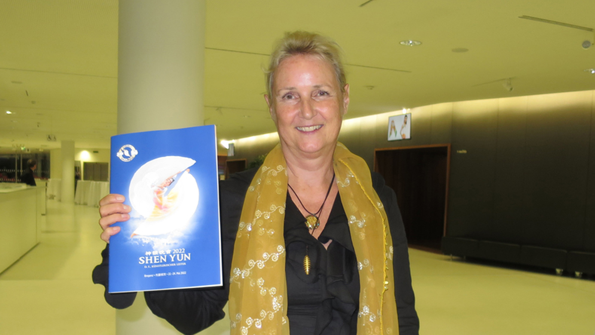 投资交易公司总裁切特·比林斯利(Chet Billingsley)想看神韵得有十年了,今年他终于如愿以偿,感到自己看完神韵后耳目一新。他说:“演出棒极了,美丽同时活力四射。我感到有意思的是,比起现在看到的许多事情,神韵演出展现出一种良好的谦逊态度,让人耳目一新。” 他说:“我认为传统价值可以帮助稳定社会,防止很多问题发生,如酗酒,吸毒,缺乏道德,这些在世界很多地方都很普遍。这种文化我并不太了解,但那是健康的,并优美的呈现出来。” 他建议大家尽快抓住机会欣赏这一伟大作品:“我以前住的地区十年都没有神韵演出,我想看神韵得有十年了,差不多刚开始时就想看。现在我刚搬到达拉斯,有演出,我马上买了前排高价区的票。如果你想看顶级的艺术作品,欣赏艺术,你绝对要尽快抓住机会,来看神韵,这是文化和艺术的伟大展现。” 德国资深记者:我们会走出黑暗  图11:二零二二年五月二十四日晚,资深记者苏珊娜·舒尔茨(Susanne Schulze)在奥地利布雷根茨节庆剧院(Festspielhaus Bregenz),观看了美国神韵世界艺术团的演出。(大.纪.元;) |