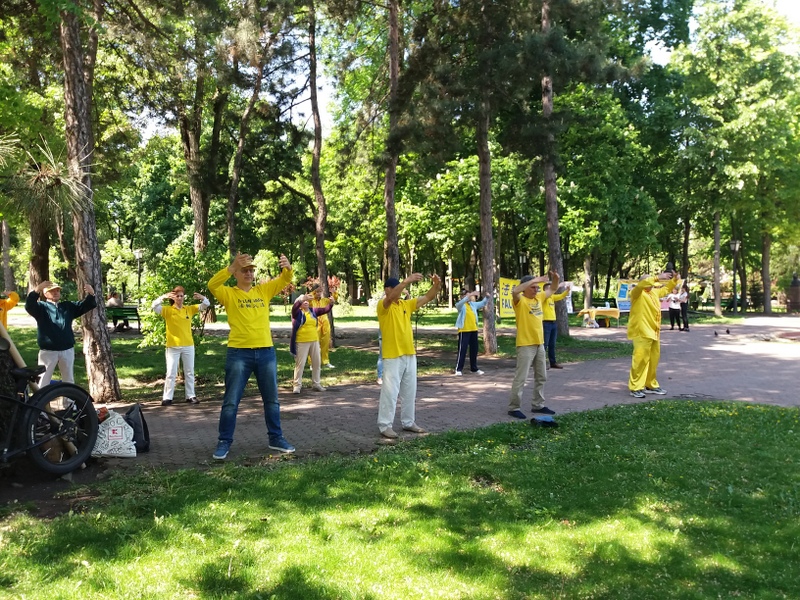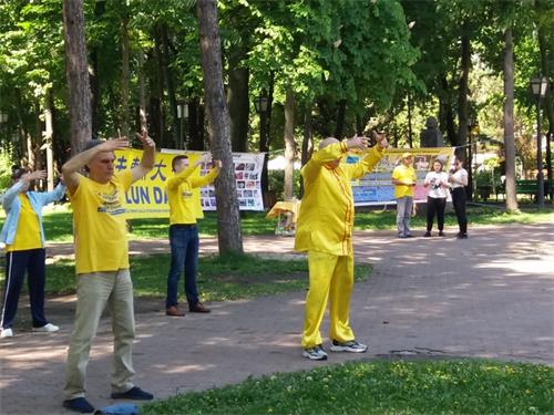 【明慧网二零二二年六月十一日】今年“五·一三”是大法洪传三十周年,二零二二年五月十三日至十五日,摩尔多瓦多地法轮功学员举办游行、和平请愿等活动,传播法轮功的真相,呼吁停止迫害。 图1~4:大法洪传三十周年之际,二零二二年五月十四日,摩尔多瓦法轮功学员来到基希讷乌市中心的普希金公园(Stefan cel Mare)集体炼功,传播法轮功的真相。 |
