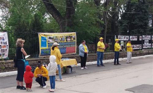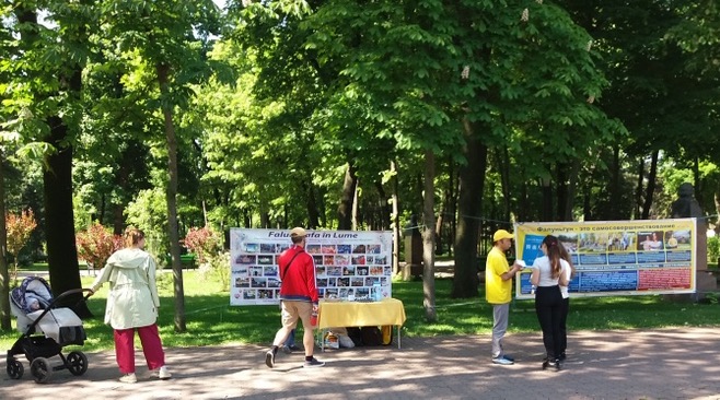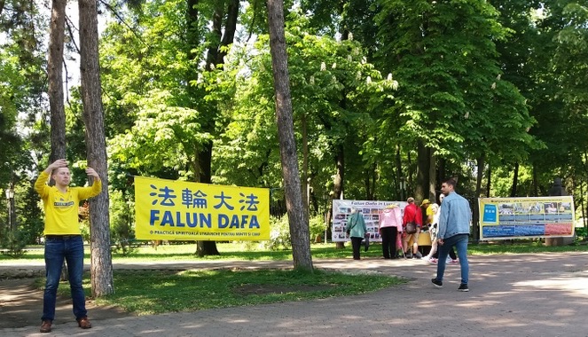 巴尔蒂位于基希讷乌以北一百四十公里处。即使在星期五早上,总统大楼的入口也是开放的,任何人都可以进入大楼周围的公园。在公园外,学员们挂出了“法轮大法”等真相横幅,并演示功法,传播大法的美好。吸引许多过往路人驻足观看 活动刚开始,没等学员摆好横幅,就有人过来询问学员在做什么。很多人拿了罗马尼亚语和俄语的真相传单,而且了解了中共迫害大法的真相,还有的表示想学功。有两位来自敖德萨和尼古拉耶夫的女士很快就学会了炼功动作。 三天弘法活动结束后,一位来参加活动的罗马尼亚学员说:“我与摩尔多瓦的学员们一起度过了美好的三天。能够认识他们,了解当地的风土人情,对我来说是一次非常好的经历。”
