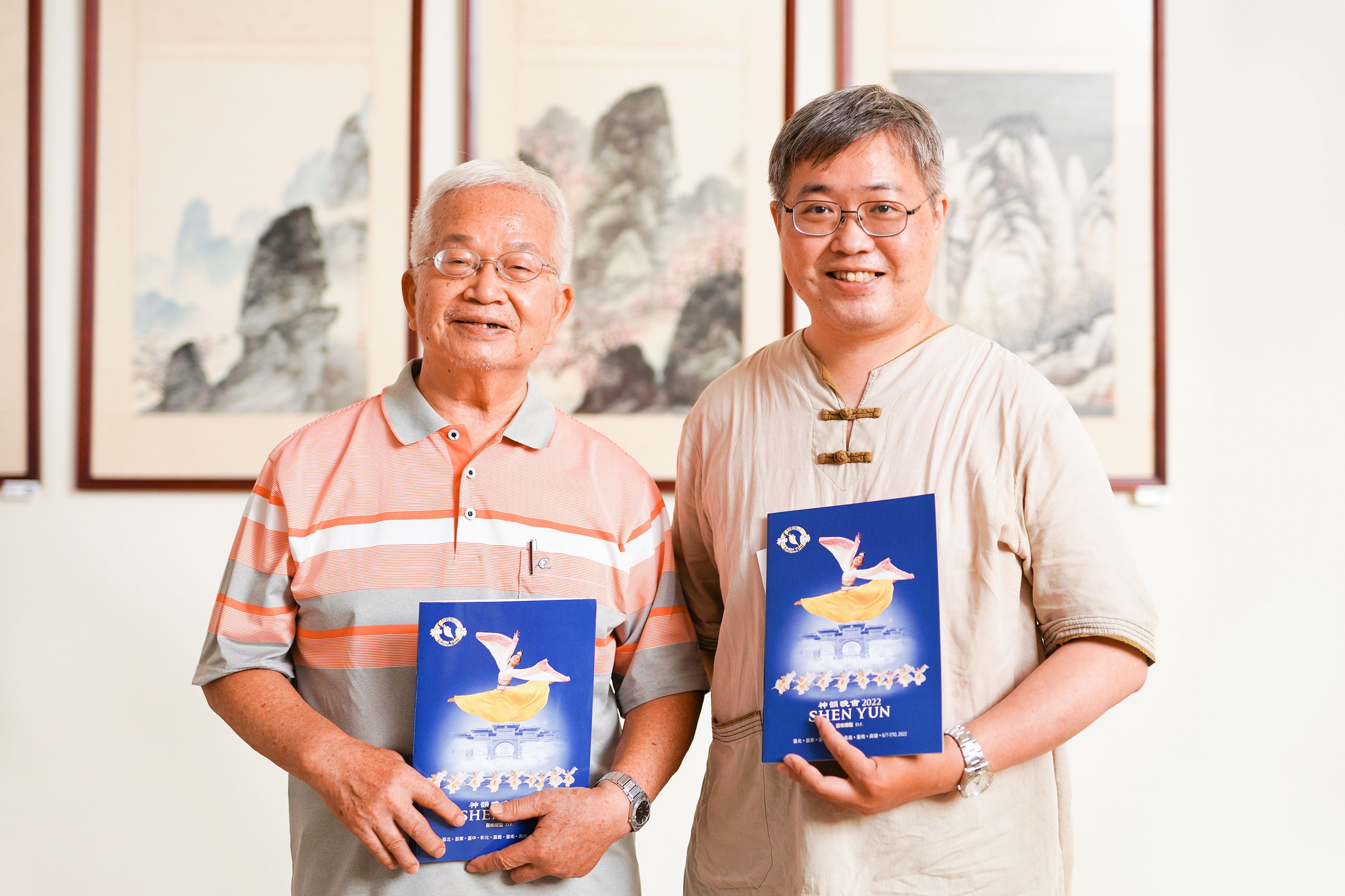 “太震撼了,下一次还会想要来看!除了她(神韵)的舞蹈非常的棒之外,舞剧中他们也在与人为善的方面给人启发。我觉得今天真的不虚此行,太震撼了!”陈盈豪竖起大拇指极度的赞赏,并表示已经迫不及待预约明年再来。 陈盈豪是泰山开发有限公司董事长,也是国内知名巧克力观光工厂——土库驿可可庄园的董事长,首次观赏他被神韵所展现的极致美深深震撼,大幕一拉开看见“满天神佛”,“整个色彩,确实让人感觉整个人的气场或者是能量,都不一样了。” 他说,“神韵不管是舞蹈水准,或者是服装水准,动态天幕,中西合璧的音乐,真的是非常非常棒,是很顶尖的世界水准。” “舞蹈方面,比如《彝族舞》包括服装以及舞蹈的编排,展现得很柔美,或者像《男子古典舞》真的是力与美的结合,真的是太震撼了。” 陈盈豪认为,神韵节目精彩纷呈是他这世前所未有的体验,他非常享受整个过程。 他补充说,“台上一分钟,台下十年功,我真的不知道这些演员他们背后有多么辛苦,能把所有动作、所有舞蹈,练就到这么成熟,练到这么完美,我觉得这太值得推荐给大家了。” 陈盈豪觉得神韵的演出能教化人心。他说:“(神韵)除了结合我们中华文化,以传统文化故事来展现,其中更涵盖善的文化、推广善的循环,我觉得是现在社会很需要也重要的一面。” 诗刊主编:观神韵感受到传统与神性的美好  图10:二零二二年七月一日午间,诗刊古典诗主编吴东晟与父亲观赏神韵国际艺术团在台中市中山堂的第四场演出。 |