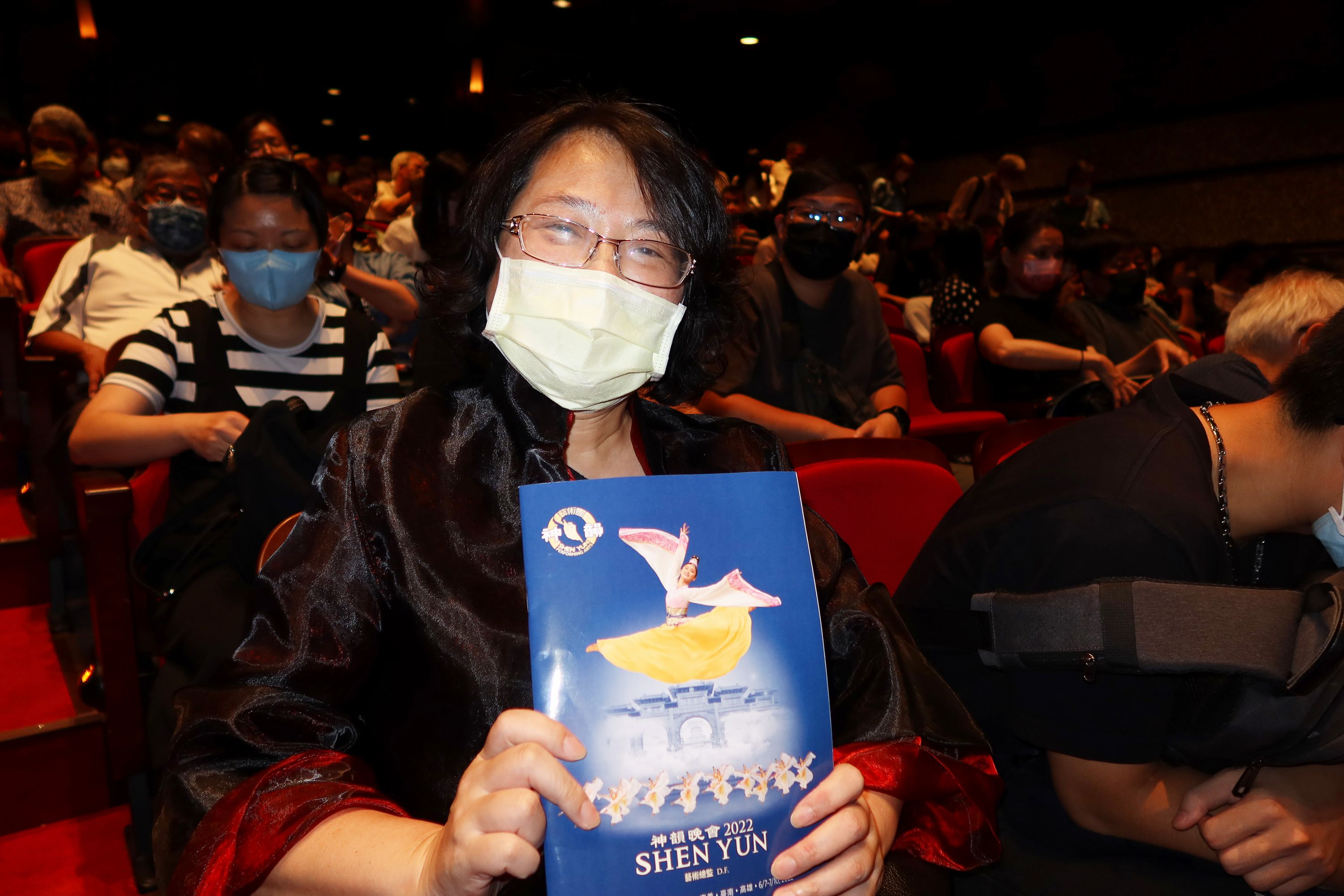学院院长庄敏仁初次观看神韵,他说:“这是人类很重要且具有很高智慧的沟通能力,她甚至透过一种意象来传达传统文化之美,是非常具有智慧的智者所编排的,从中也可以看出舞蹈演员之间所表达的内涵,是一种仁者与勇者的精神与宽广的胸怀。” 他说:“我发觉在每个节目之间有一个脉络,非常具有传统文化特色,详尽地把各种文化特点,透过舞蹈、透过多元的艺术表达出来,是一个非常高智慧的表达形式,展现出一个宽广的胸怀,以及她的文化之美。”庄敏仁认为,每个节目都寓意深远。 庄敏仁竖起大拇指,推荐大家来看神韵,“我觉得神韵是有能量的一场音乐艺术演出,跟一个综合艺术的最高境界!这种文化的情感、文化之美,还有把我们凝聚在一起的情感,我想大家已经忘记什么叫疫情了,只有热情了。” 珠宝设计师观神韵 获得灵魂的洗涤和沉淀  图6:二零二二年七月一日晚间,珠宝设计师林明丽观赏神韵国际艺术团在台中市中山堂的第五场演出。 |