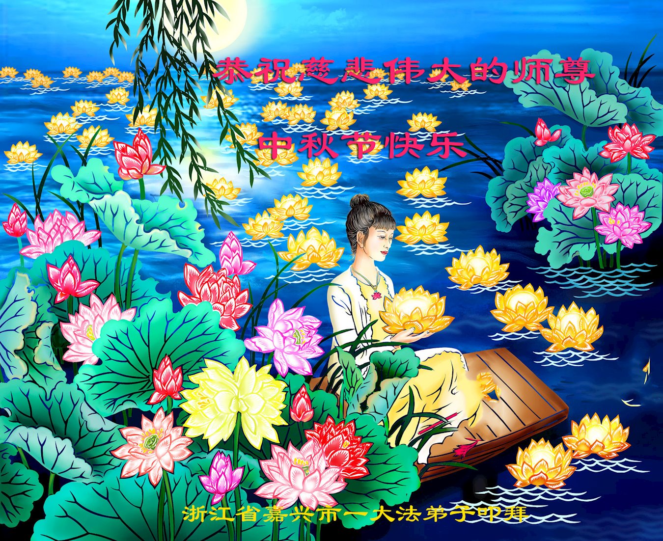 浙江省嘉兴市一大法弟子恭祝慈悲伟大的师尊中秋节快乐! 浙江宁波市一青年大法弟子恭祝师尊中秋节快乐!