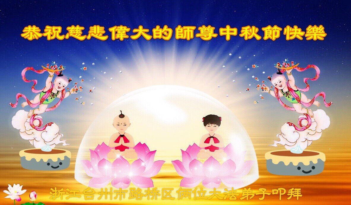 浙江省台州市路桥区俩位大法弟子恭祝伟大慈悲的师尊中秋节快乐!