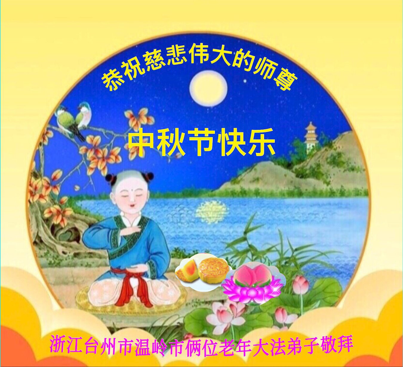 浙江省台州市温岭市俩位老年大法弟子恭祝伟大慈悲的师尊中秋节快乐!