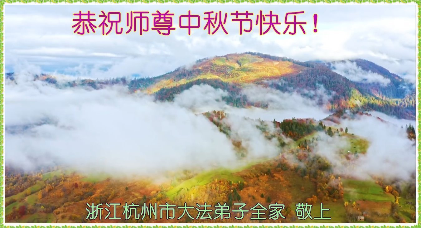 浙江省杭州市大法弟子全家恭祝师尊中秋节快乐!