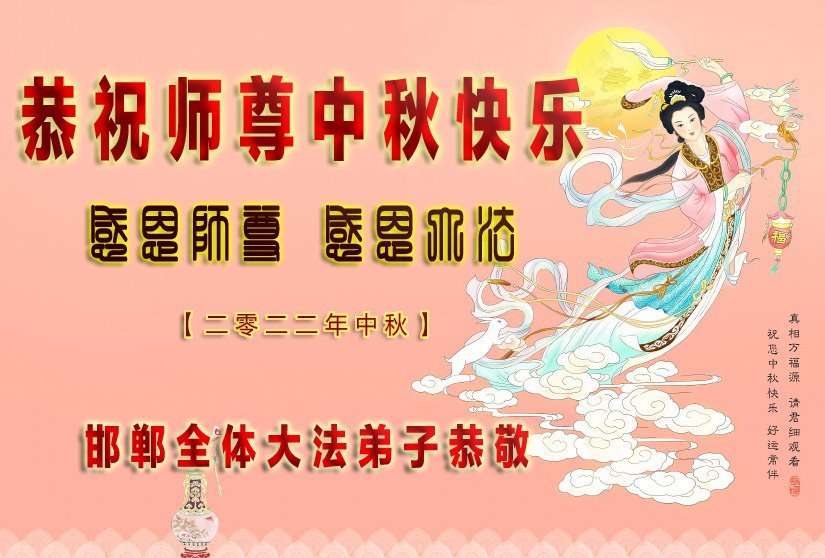 感恩师尊!我们感受到师尊的慈悲保护,我们更坚定信念,溶于法中,做好三件事,让师父放心。 河北邯郸全体大法弟子恭祝慈悲伟大师尊中秋节日快乐!
