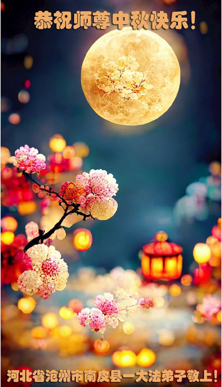 感恩师尊慈悲救度! 法轮大法好,真善忍好。 河北省沧州市南皮县一大法弟子恭祝慈悲伟大的师尊中秋节快乐!