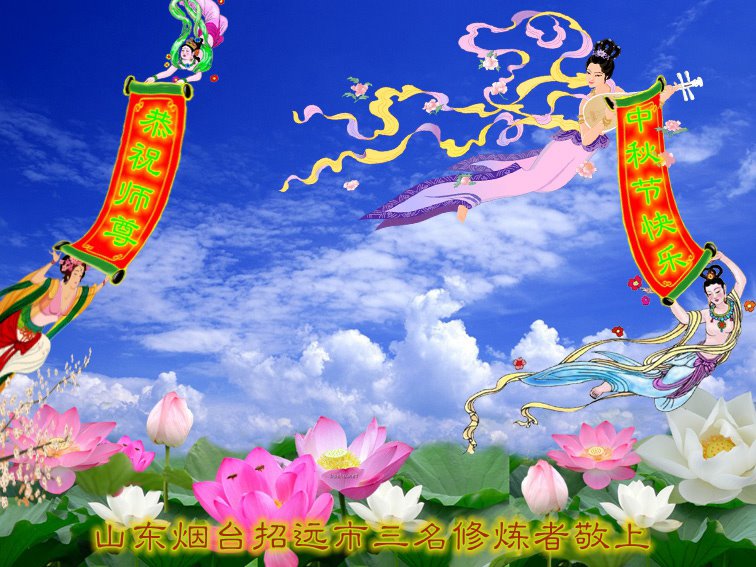 感恩师尊的慈悲苦度!感恩法轮大法的指引和教诲,让弟子摔倒了爬起来,找出自己的不足,认识到修炼的严肃性,精進实修,继续做好大法弟子的三件事报师恩。叩拜师尊! 山东烟台招远市一名大法弟子恭祝师尊中秋节快乐!
