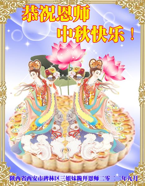 西安市曲江学法组全体大法弟子恭祝师尊2022年中秋节快乐!叩谢师父! 陕西省西安市碑林区三姐妹恭祝恩师中秋快乐!