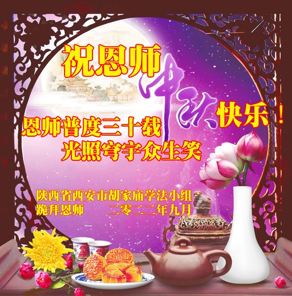 陕西省西安市胡家庙学法小组大法弟子恭祝师父中秋快乐!