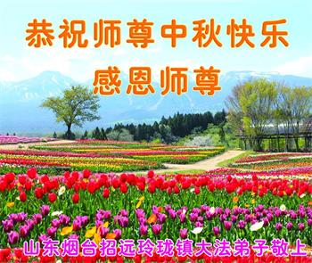山东烟台招远城区一大法弟子恭祝慈悲伟大师尊中秋节快乐!