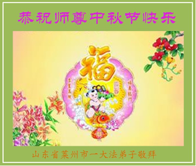 值此中秋佳节,弟子想念师尊,恭祝师尊中秋节快乐!感恩师尊慈悲救度!弟子一定抓紧时间做好三件事,多救人,完成史前大愿,不辜负师尊的殷切期望。 山东蓬莱大法弟子敬上 山东邹平大法弟子恭祝慈悲伟大的师尊中秋节快乐!