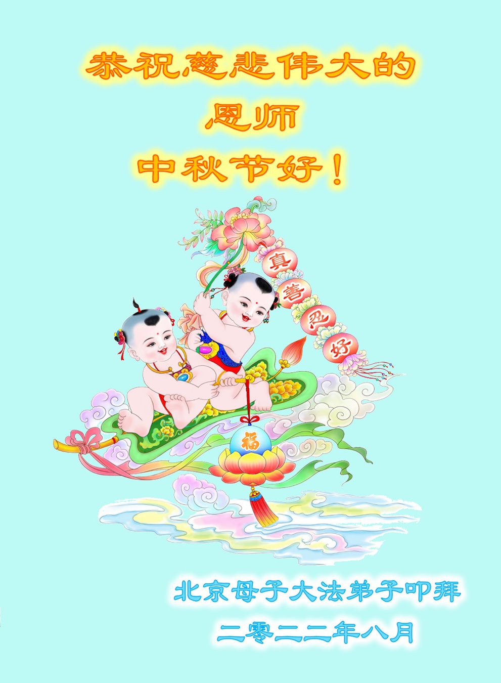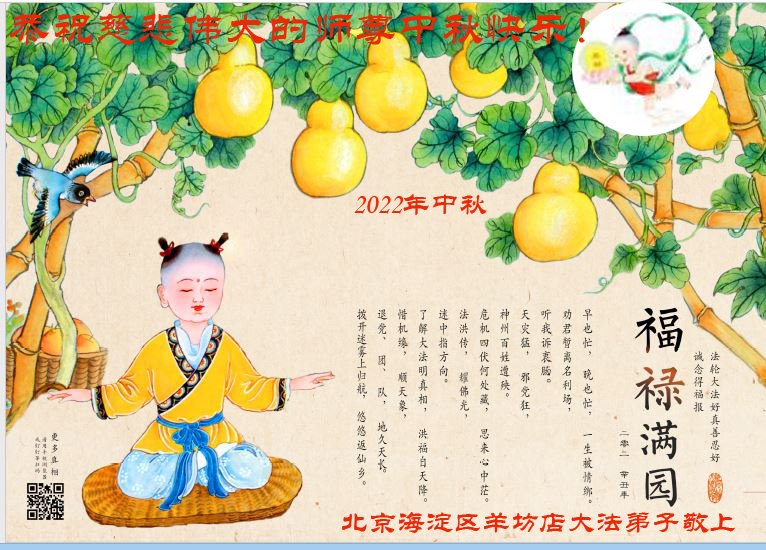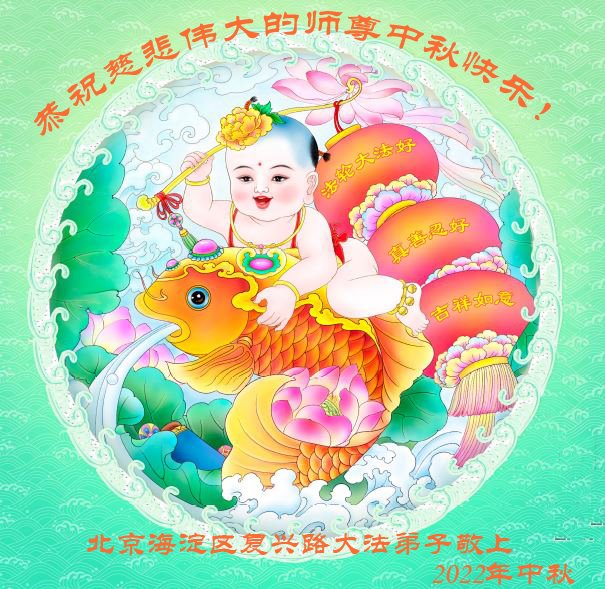 【明慧网二零二二年九月八日】 北京市朝阳区一学法小组大法弟子恭祝师尊中秋节日快乐!(重生篇)