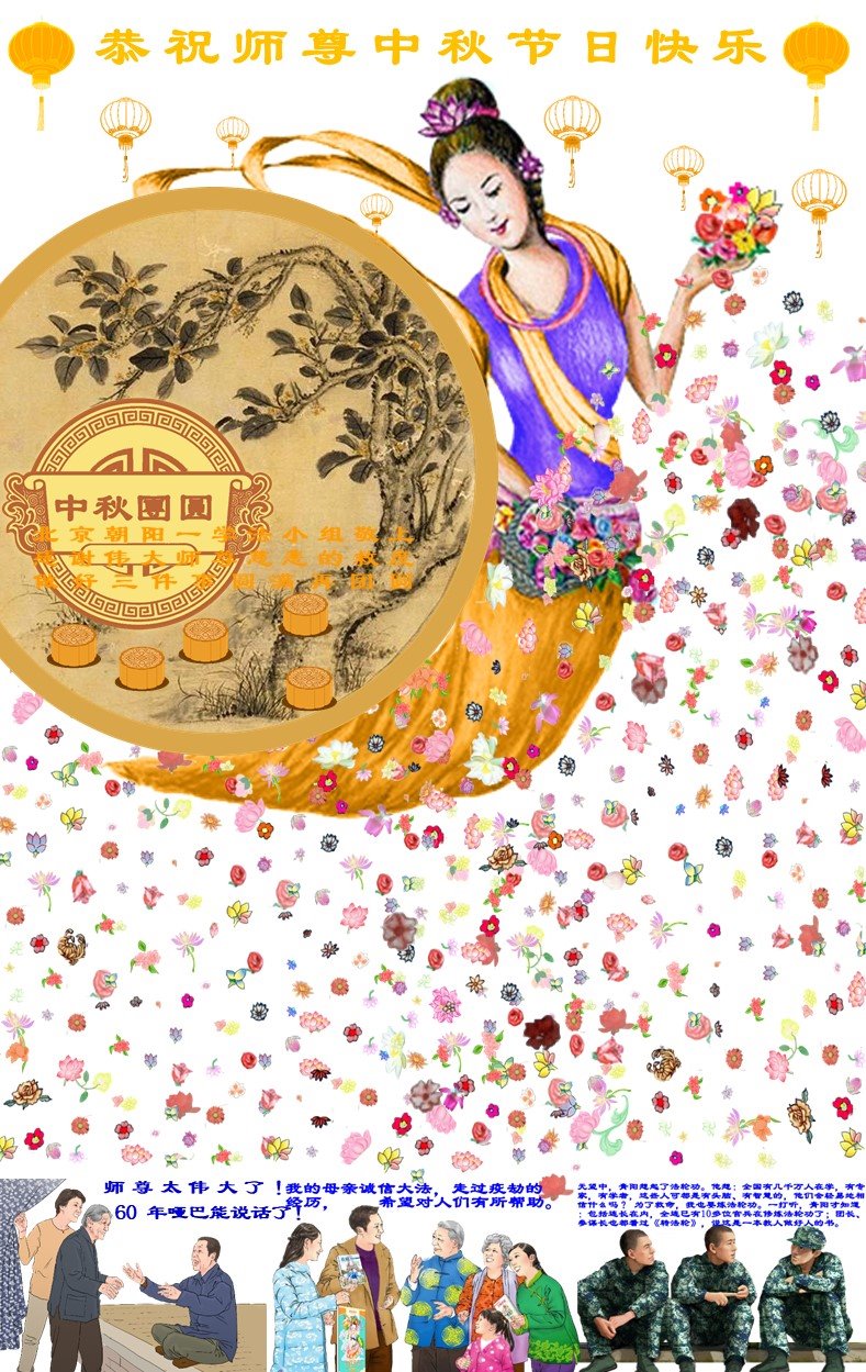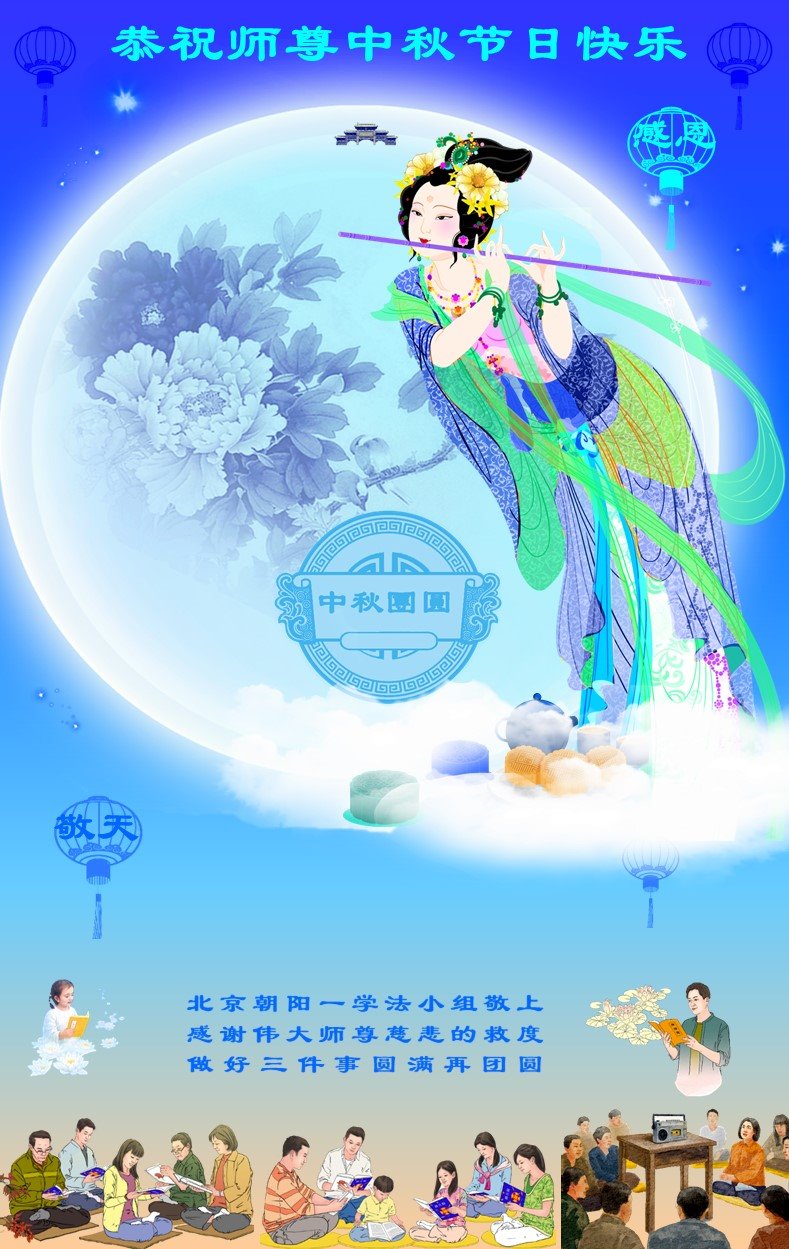 北京市朝阳区一学法小组大法弟子恭祝师尊中秋节日快乐!(讲真相篇)