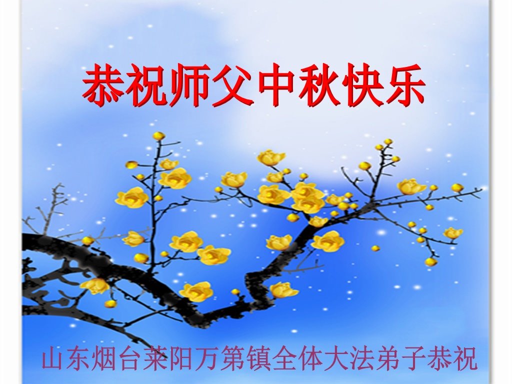 我们莱阳万第镇的全体大法弟子恭祝师父中秋快乐! 我们一定学好法,整体互相配合好,谨遵师命,做好三件事,完成各自的 史前誓约。 山东莱芜大法弟子恭祝师尊中秋快乐!