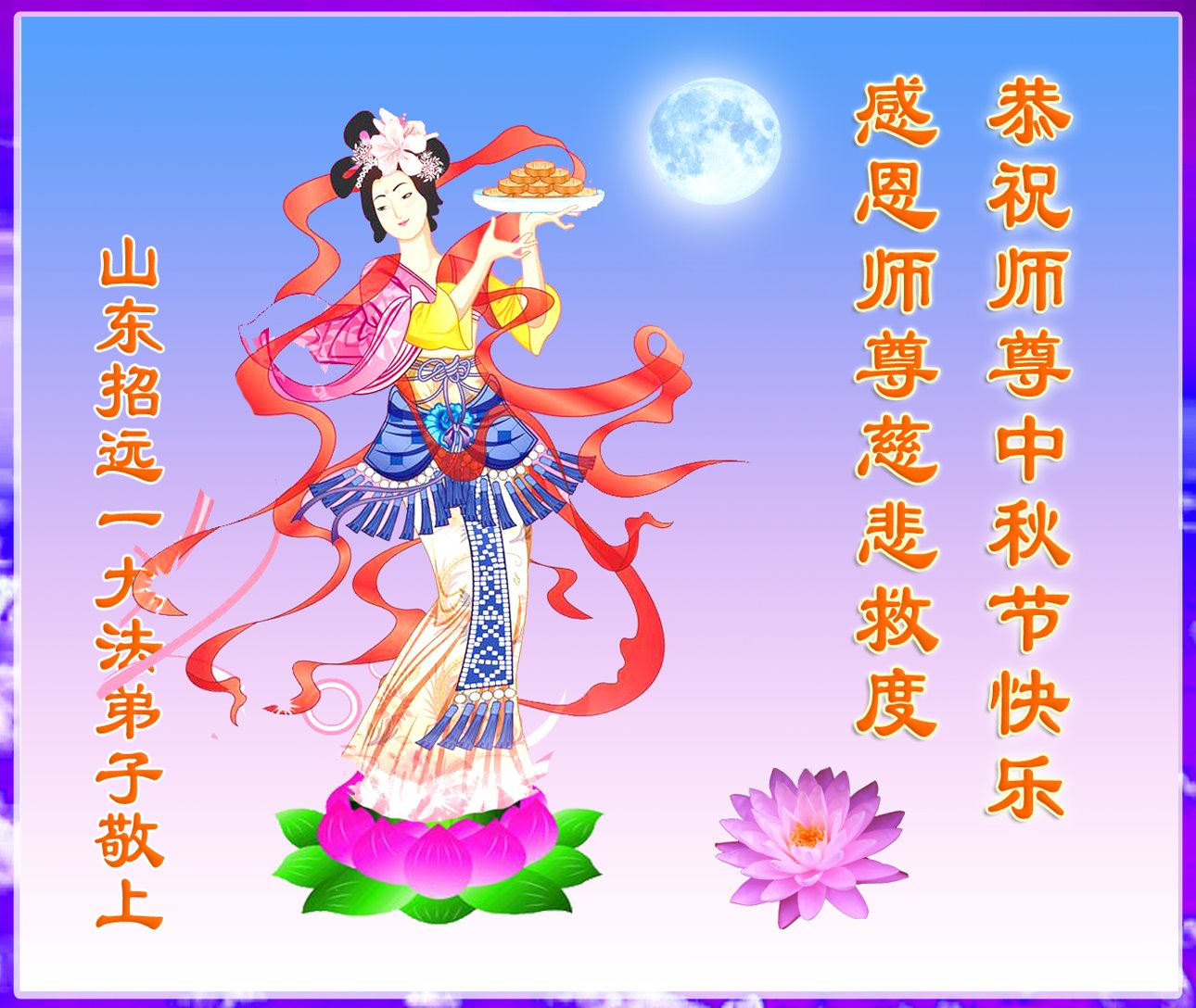 尊敬的师父好! 弟子感恩师父的慈悲苦度!愿师父中秋节快乐!谢谢师父! 感恩师父 学法修心换胎骨 内找提升心宽广 感恩师尊慈悲度 昔日怨缘变善缘 坦荡无执信师父 师尊有如在眼前 浩荡师恩无以报 三件事中好好做 合十 山东烟台栖霞市一大法弟子携家人同修及亲友敬贺 山东泰安市大法弟子恭祝师尊中秋快乐!