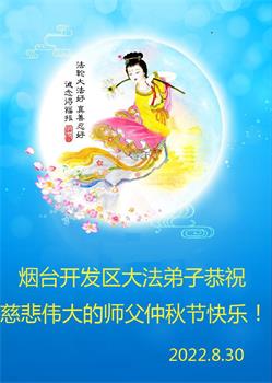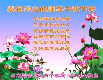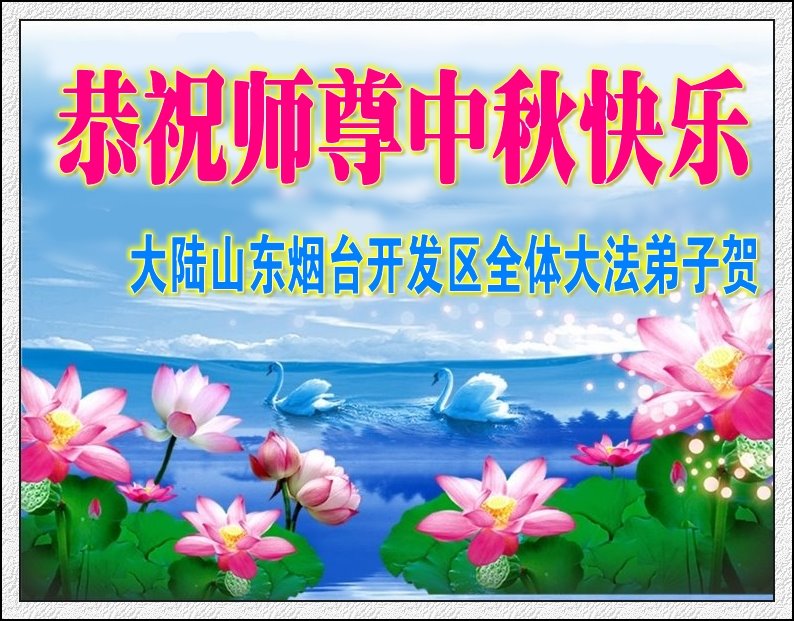 山东省烟台市九个学法小组的全体大法弟子恭祝师父中秋快乐!