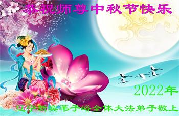 【明慧网二零二二年九月八日】 辽宁省抚顺市望花区全体大法弟子恭祝慈悲伟大的师尊中秋节快乐!
