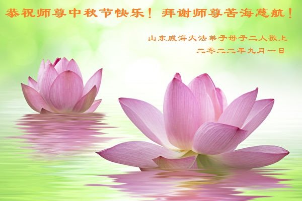 师尊辛苦了,感恩师尊慈悲救度。在这有限的时间里,弟子要学好法,多学法,修好自己,救度众生,跟上师尊的正法進程,做好三件事。 叩拜师尊!合十 山东威海大法弟子母子二人恭祝师尊中秋节快乐!